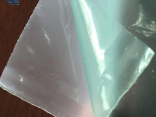 產(chǎn)品形態(tài):薄膜+PE,表面為霧面,熱貼合后呈透明的狀態(tài)。